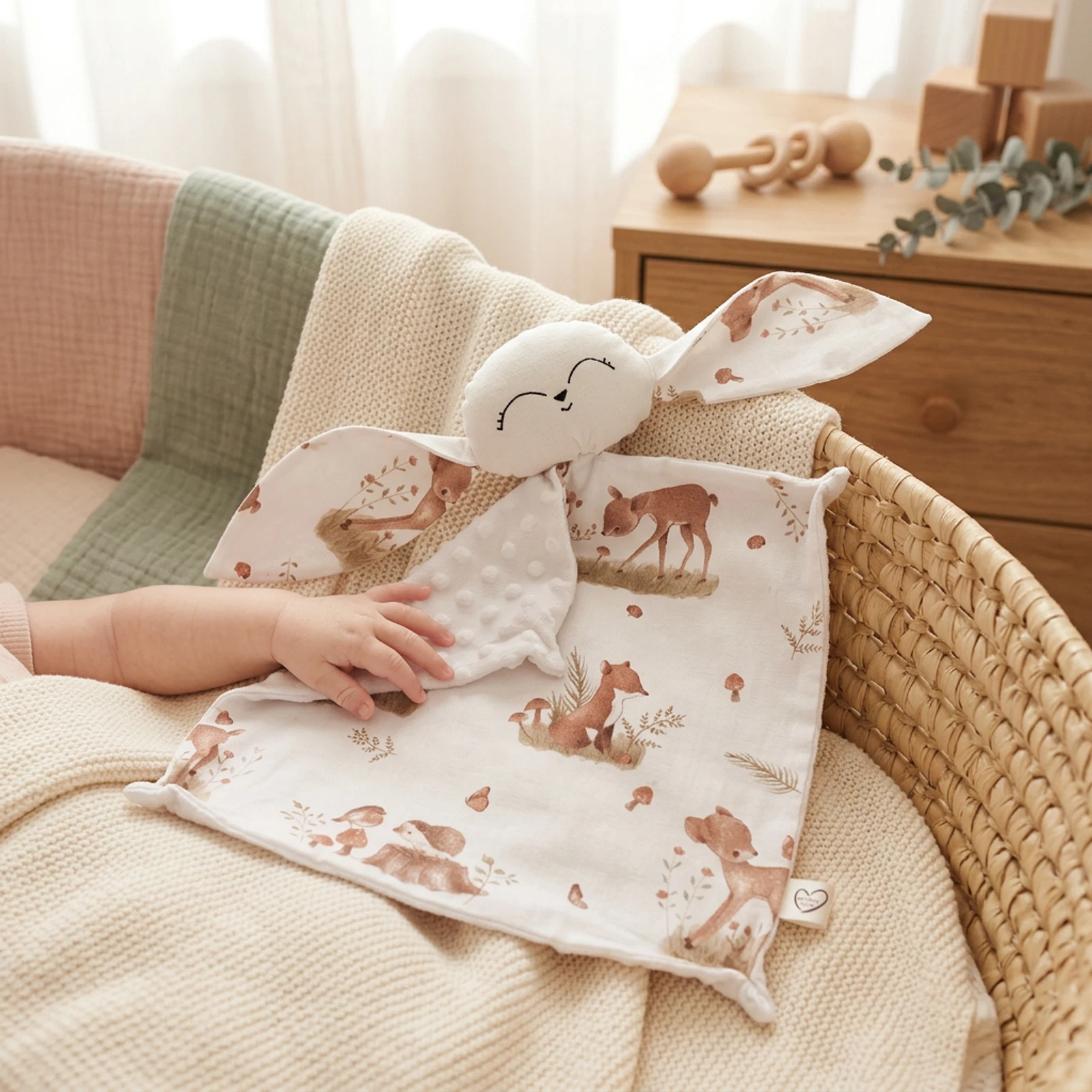 Erdei állatkás szundikendő, rosegold minky plüss hátoldallal.